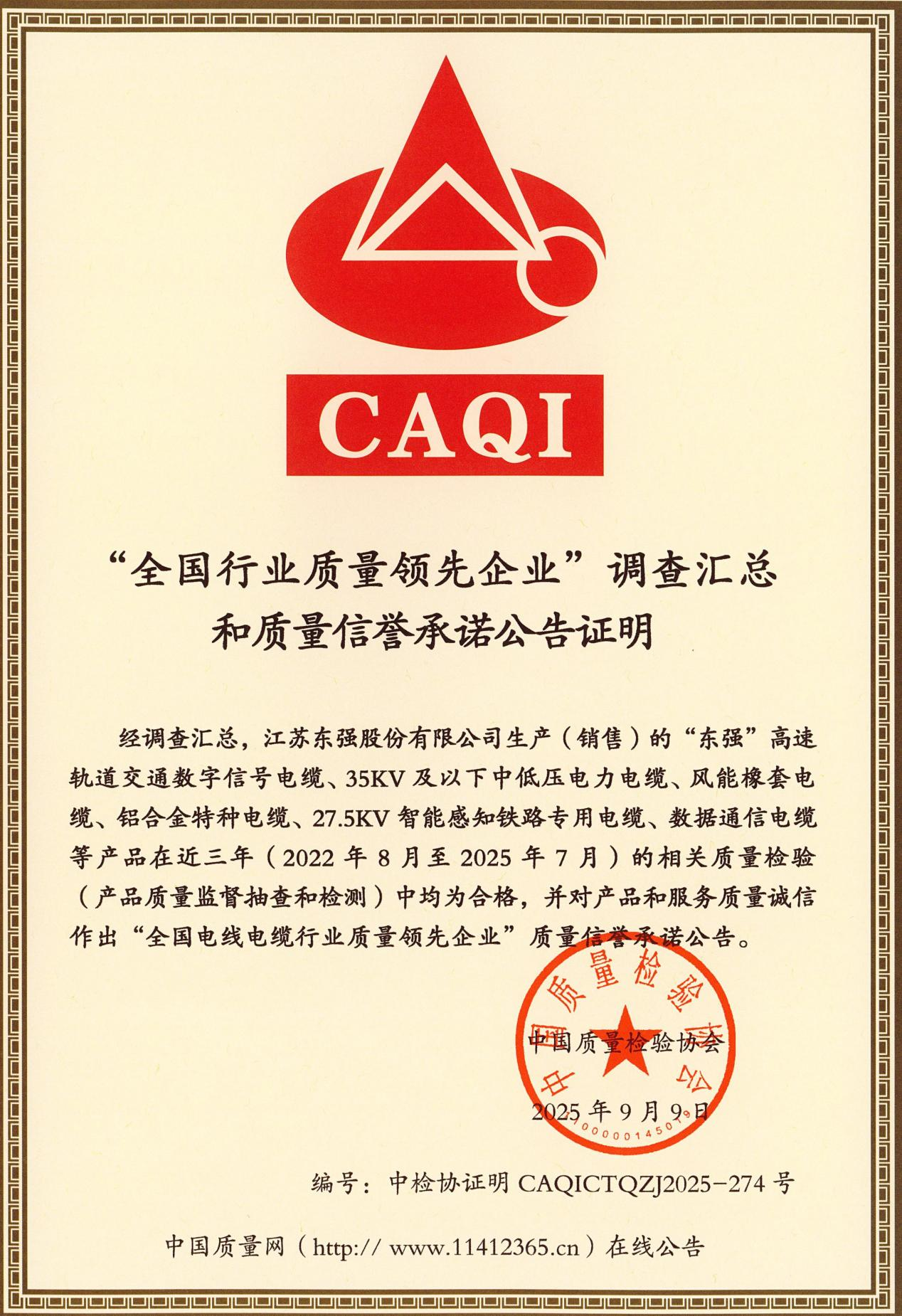 面向未来,东强公司将持续强化质量管理与技术创新,不断提升质量水准,以诚心、恒心、匠心、专心践行质量承诺,打造卓越品牌,彰显责任担当,为推动线缆行业高质量发展贡献东强力量。