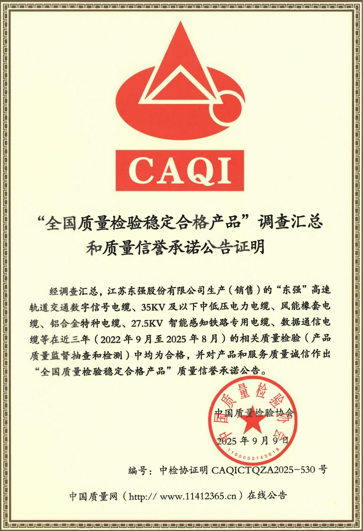 与此同时,东强公司荣获中国质量检验协会颁发的“全国行业质量领先企业”、“全国质量检验稳定合格产品”两项证书。