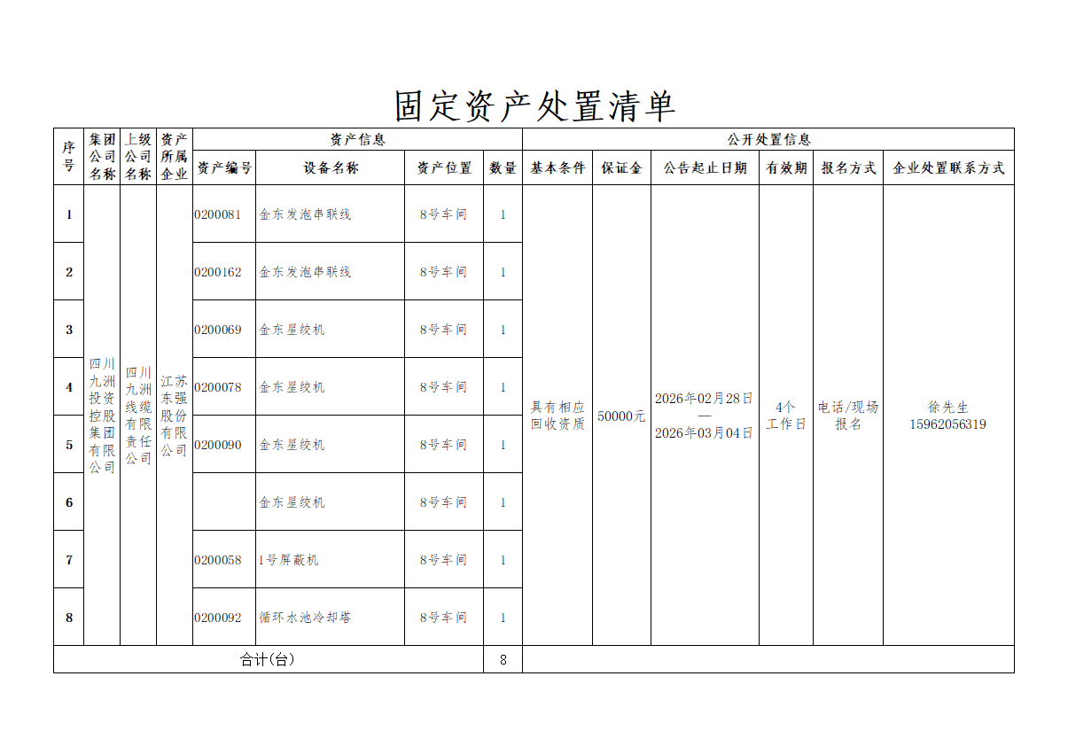 江苏东强股份有限公司诚邀投标人参与我司固定资产处置招标,为使招标过程公平、公正、公开,现将相关事项通知如下,如投标人报名参与此次招标,则视为同意本文件中的相关条款。